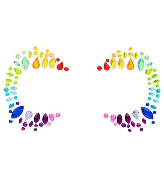 Vaivorykštės spalvų priklijuojami veido deimantai – spindintis ir drąsus akcentas, puikiai tinkantis „Pride“ tematikai bei spalvingiems karnavaliniams įvaizdžiams! Šie dekoratyviniai kristalai sukurti taip, kad būtų lengvai priklijuojami ir iš karto suteiktų veidui išskirtinio žavesio.