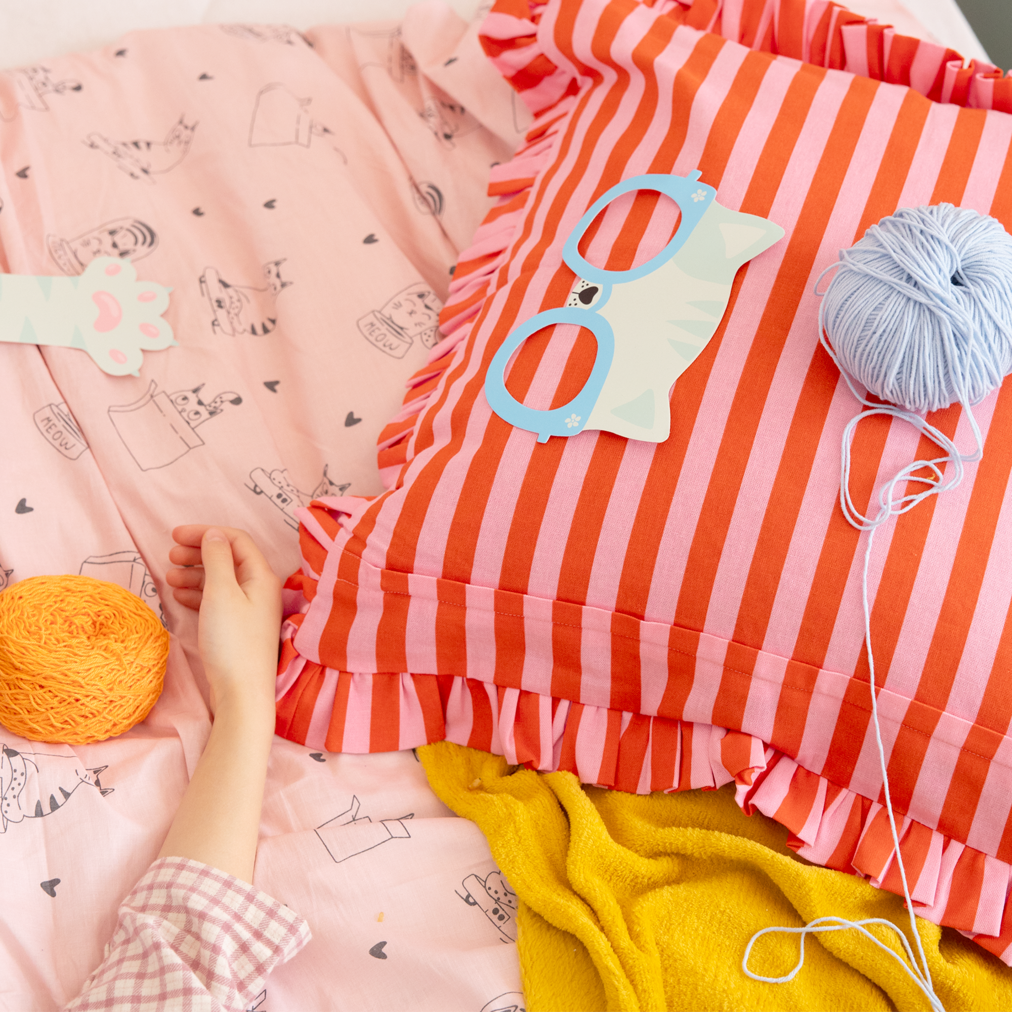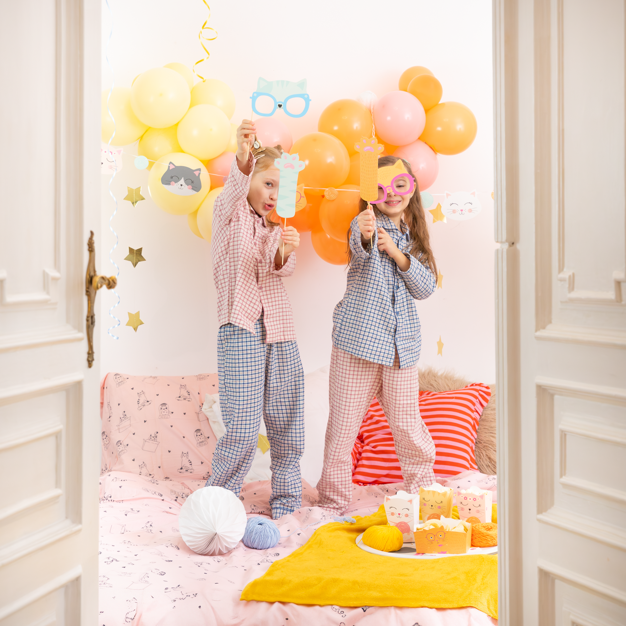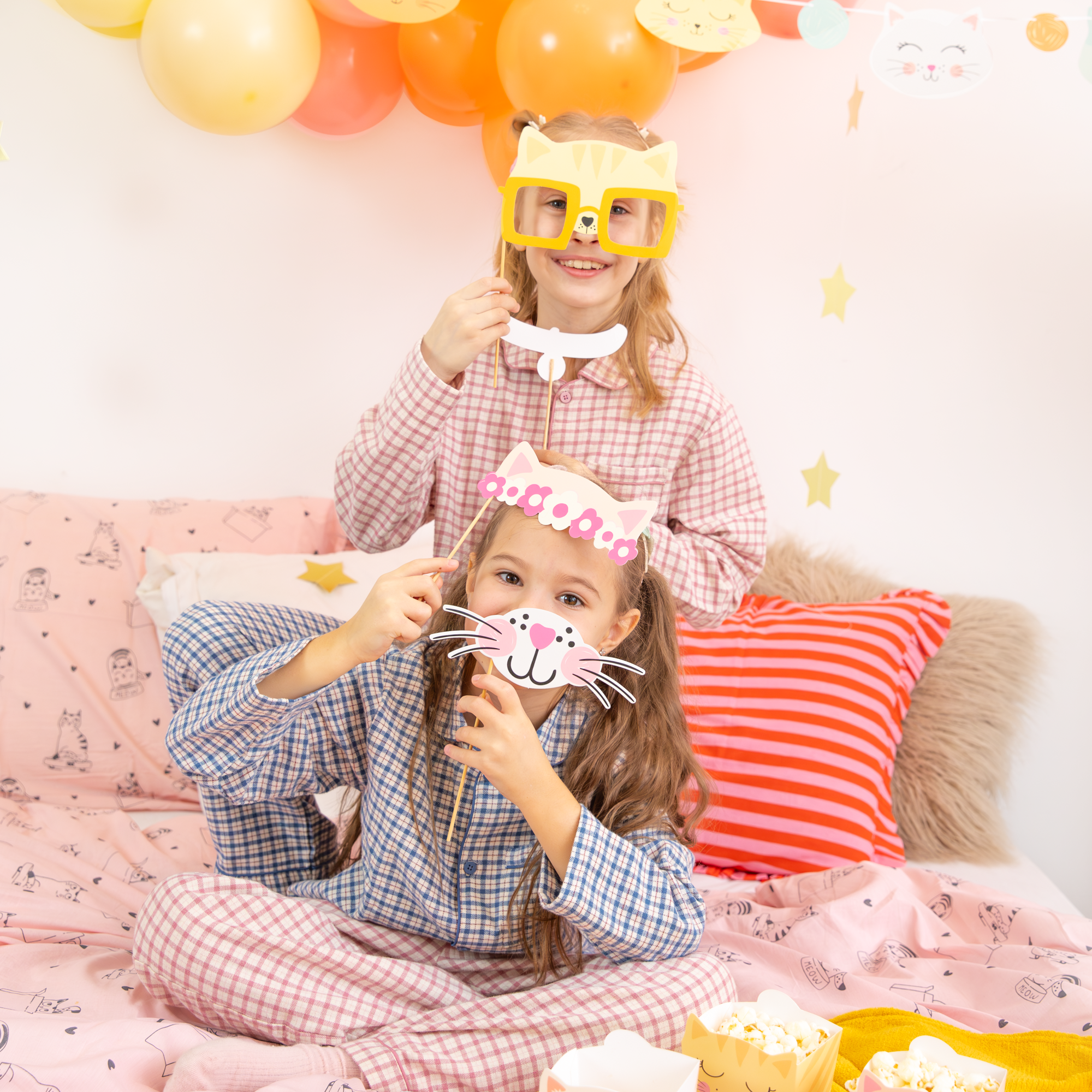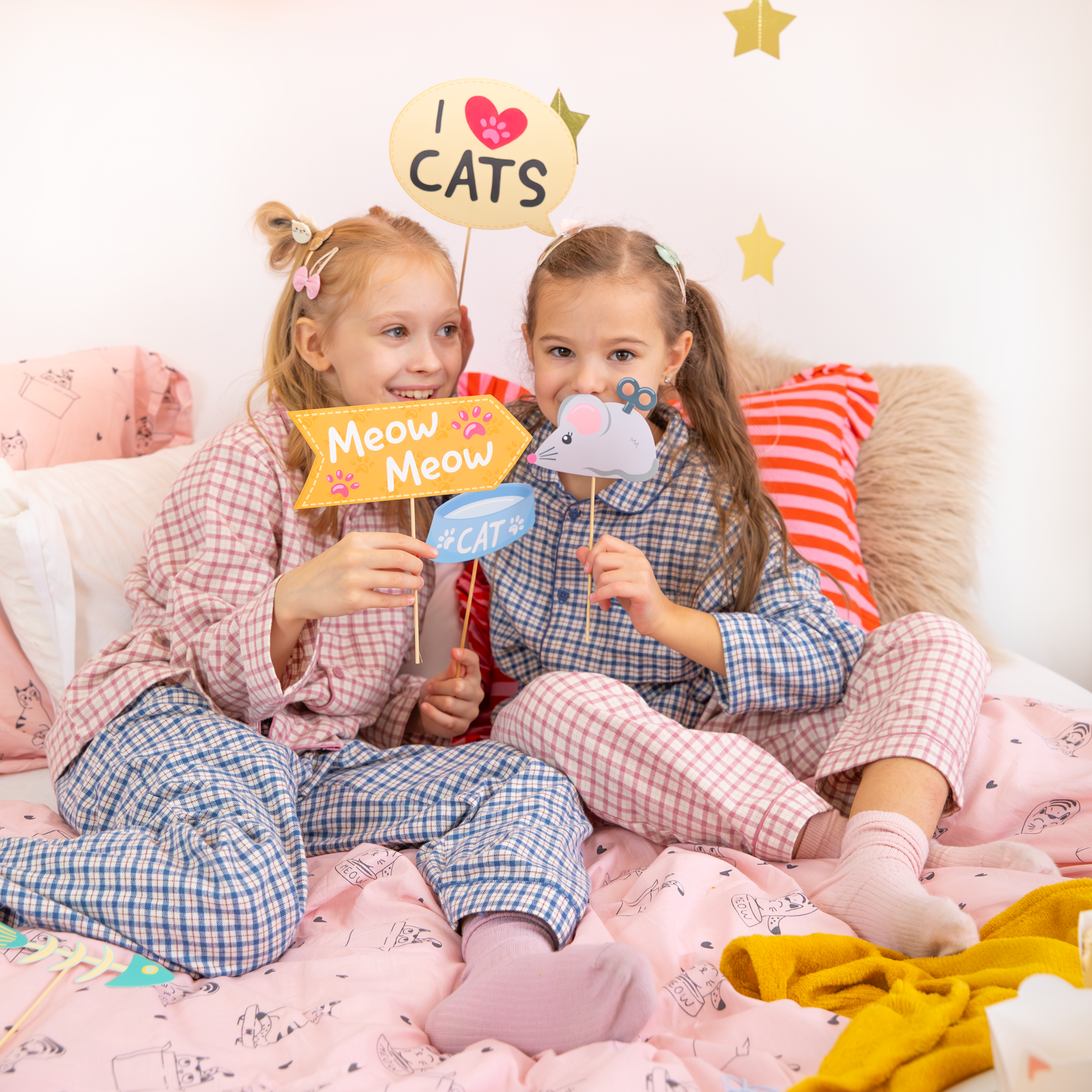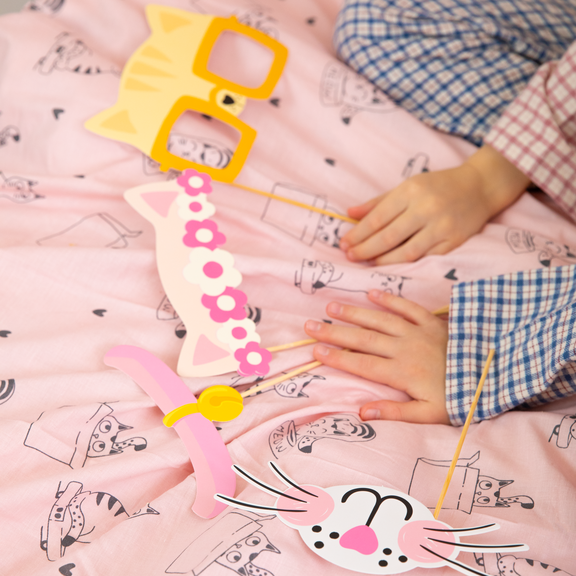 • Rinkinį sudaro: 14 kaukių (2 ženkliukai, 4 kačių galvos, 3 letenėlės, 1 dubenėlis, 1 antkaklis, 1 pelė, 1 žuvies kaulas, 1 katino snukutis), 14 medinių pagaliukų ir 20 klijų taškelių rekvizitų tvirtinimui.