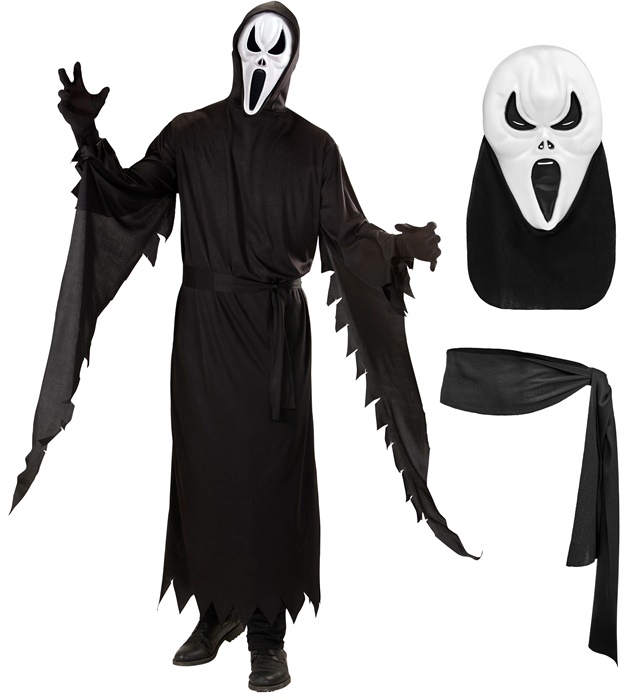 Legendinis „Klyksmo“ kostiumas suaugusiems – tikras siaubo klasikos simbolis! Juodas ilgas apsiaustas su gobtuvu ir garsioji balta kaukė sukuria įspūdingą ir atpažįstamą įvaizdį, kuris puikiai tinka Helovinui, teminiams vakarėliams ar karnavalams. Kostiumas lengvas, patogus ir nevaržo judesių – idealus pasirinkimas vakarėliui iki paryčių.