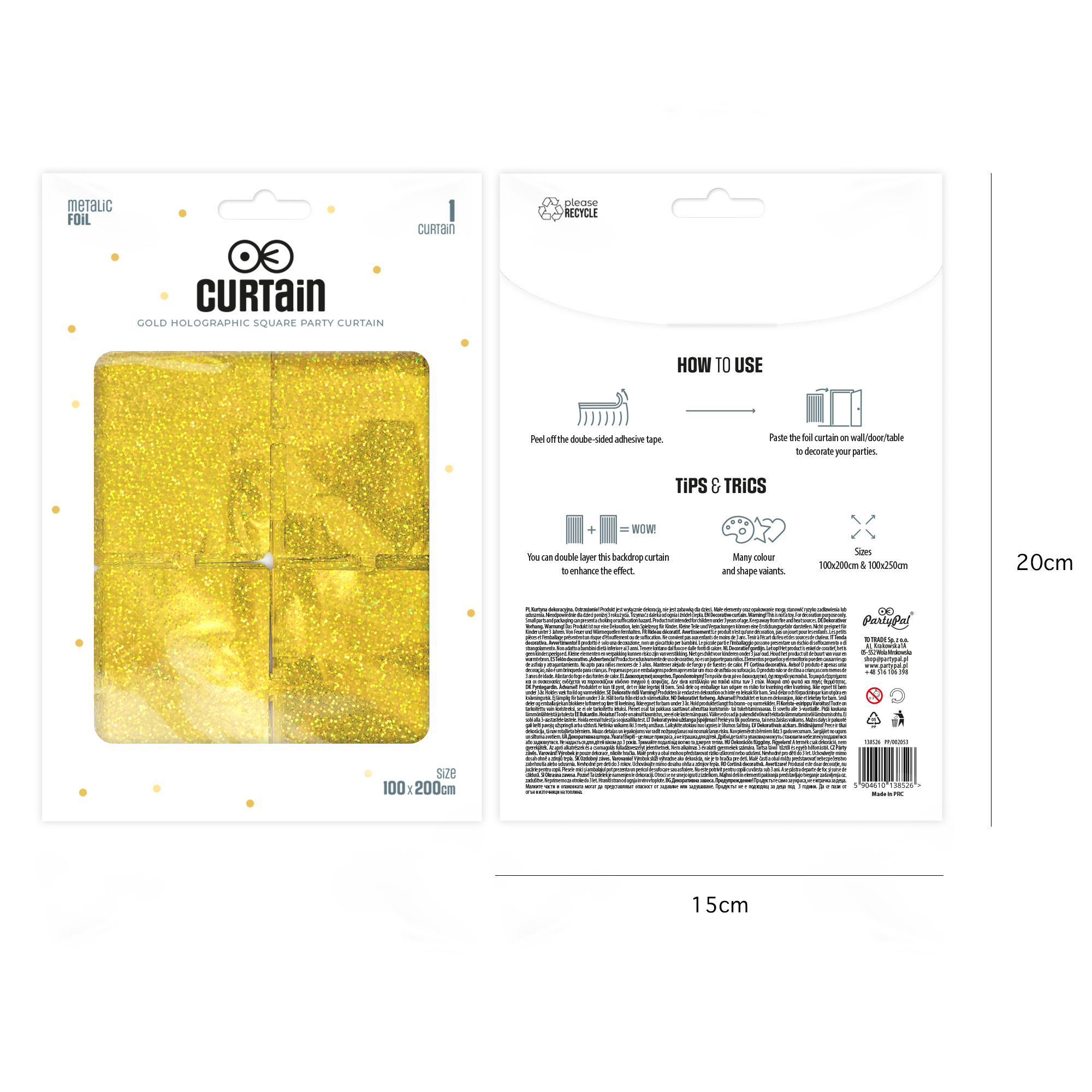 Aukso spalvos halografinė vakarėlių užuolaida kvadratėliais (100 x 200 cm) – prabangus ir blizgantis dekoratyvinis akcentas jūsų šventei! Ši užuolaida pagaminta iš aukštos kokybės halografinės medžiagos, dekoruota blizgančiais kvadratėliais, kurie žaismingai atspindi šviesą ir sukuria išskirtinę atmosferą. Dėl savo dydžio (100 x 200 cm) ji puikiai tinka kaip fonas nuotraukoms, scenos dekoracija ar dekoratyvinė uždanga vakarėlio erdvėje. Aukso spalvos halografinė užuolaida suteiks jūsų renginiui elegancijos, spindesio ir šventiškumo, padedant sukurti nepamirštamą atmosferą.