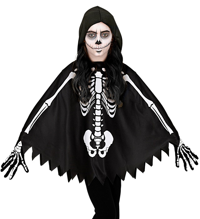 Stilingas ir smagus juodas apsiaustas su baltos spalvos skeleto motyvais – puikus pasirinkimas mažiesiems Helovino ar karnavalo dalyviams! Apsiaustas lengvas, patogus ir nevaržo judesių, todėl vaikas galės laisvai mėgautis švente. Ryškūs skeleto piešiniai suteikia kostiumui išskirtinumo ir tikro Helovino dvasios.