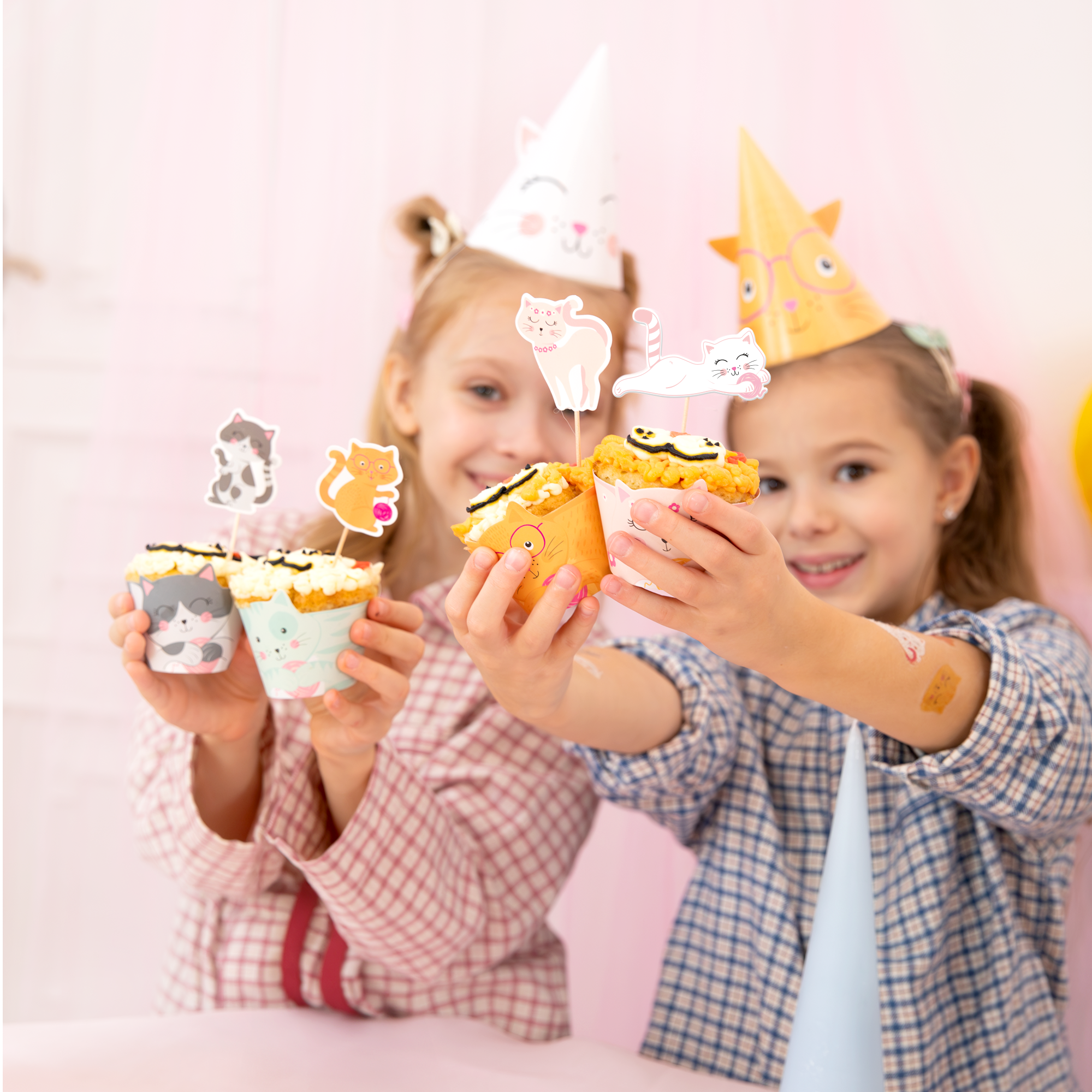 Papuoškite tortą ir keksiukus žaismingais bei mielais „Kačiukių“ tematikos smeigtukais! Pastelinių spalvų torto ir keksiukų dekoracijos suteiks desertams ypatingo žavesio ir puikiai papildys kačiukų, gyvūnėlių ar vaikų šventės temą.