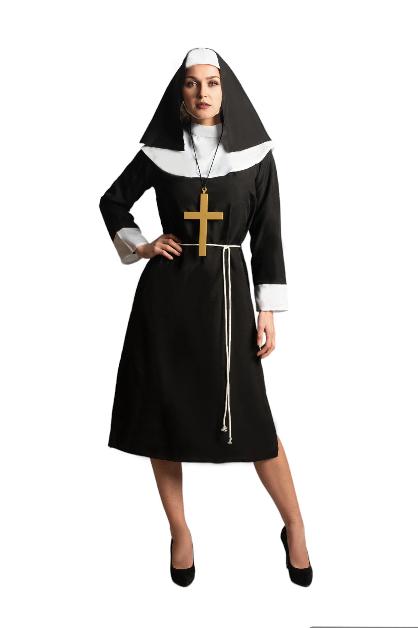 Įkūnyk išskirtinį personažą su vienuolės karnavaliniu kostiumu! Tai originalus ir lengvai atpažįstamas įvaizdis, kuris garantuotai pritrauks dėmesį bet kuriame vakarėlyje. Puikiai tinka karnavalams, Helovinui, teminiams renginiams ar teatralizuotiems pasirodymams.