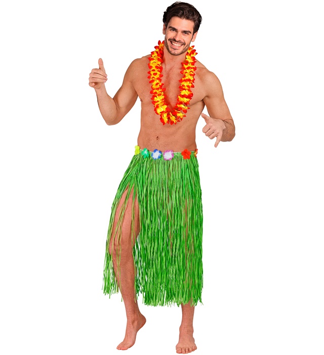 Žalias ilgas havajietiškas sijonas – puikus pasirinkimas ieškantiems spalvingo ir nuotaikingo karnavalinio įvaizdžio. Šis sijonas suteikia egzotiškos salų dvasios ir idealiai tinka teminiams vakarėliams, festivaliams ar pasirodymams.